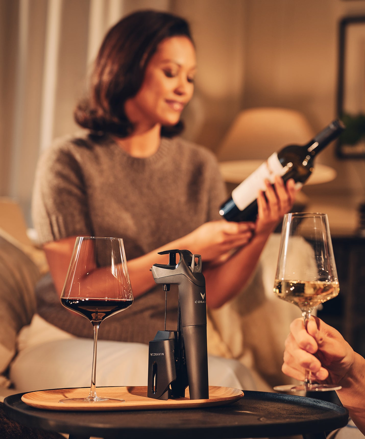 The Coravin Aerator offers the equivalent of up to 90 minutes decanting, enhancing the wine's aromas and flavors instantly.