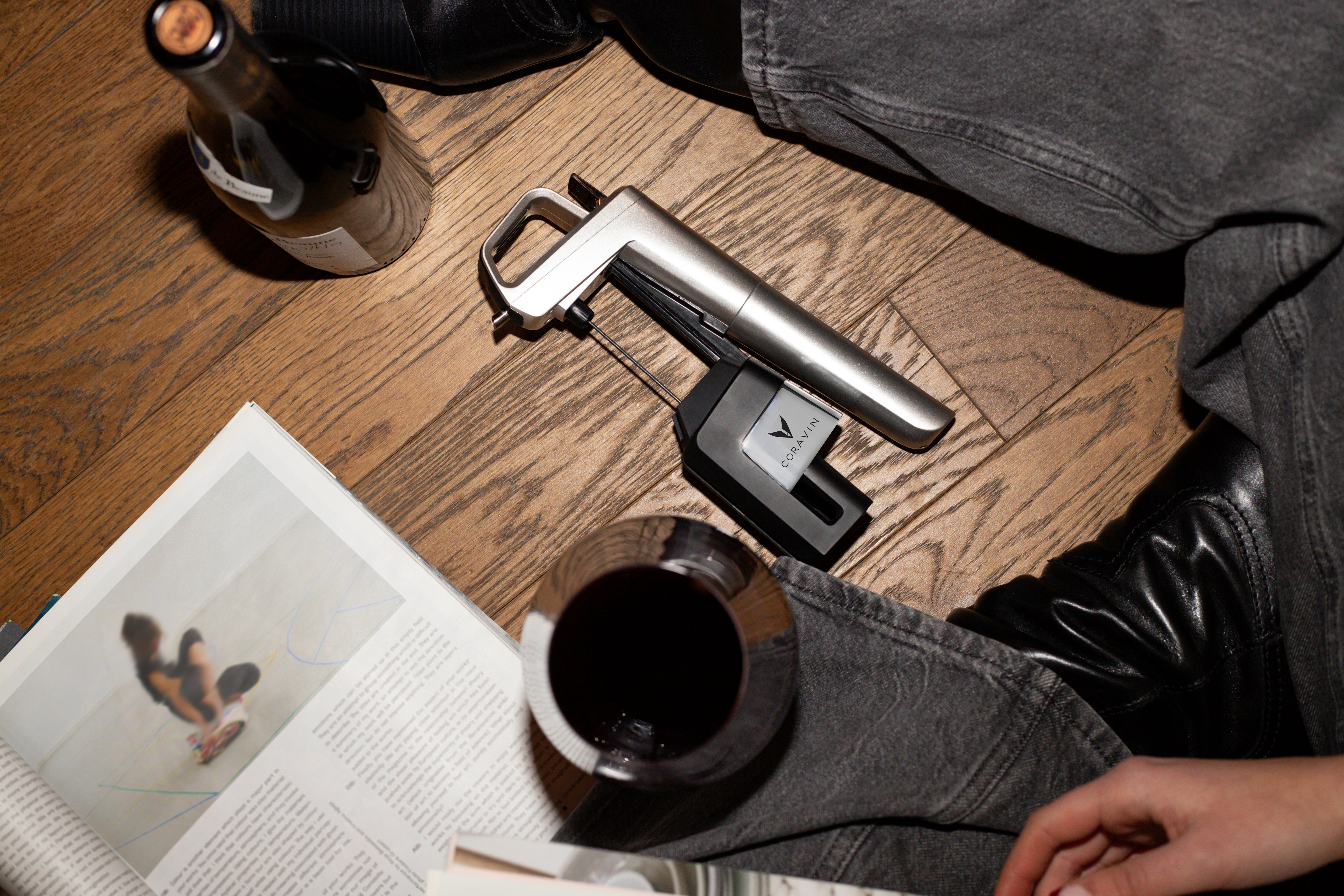 The Coravin Timeless Wine by-the-glass System is easy to use - just insert, tip, and pour. Place the Coravin Timeless System on top of the bottle and push the Needle through the cork. Coravin Timeless Systems work on all cork-sealed, still wines. Tip the bottle as if you are pouring from an open bottle. Quickly press the trigger to pressurize the bottle. Release the trigger to pour into your glass. For the Timeless Eleven just tilt and pour. Tip the bottle back up to stop the pour. Remove the Needle by pulling the system straight up. The cork will reseal naturally and continue to protect your wine for weeks, months, or even years.